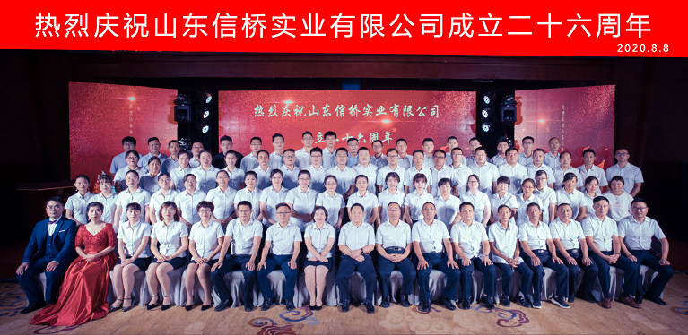 2020年8月8日,山東信橋?qū)崢I(yè)有限公司二十六周年慶典在泰安帝苑酒店隆重舉行。各路榜樣精英、以及二十六年來(lái)給予信橋厚愛(ài)的各級(jí)領(lǐng)導(dǎo)、各位同仁、新老朋友在這里歡聚一堂,與為公司付出辛勤勞動(dòng)的全體員工一起,分享屬于大家的光榮與快樂(lè)!