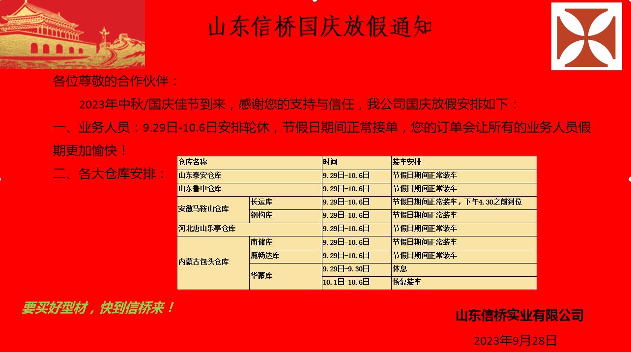 山東信橋實業(yè)有限公司放假通知